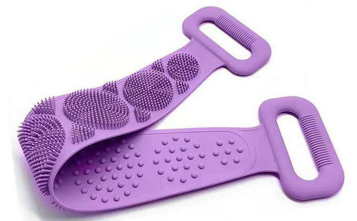 硅膠搓澡巾設(shè)計(jì)成條狀性,健康環(huán)保不含雙酚A等有害物質(zhì),耐高低溫 不易破裂。硅膠搓澡巾,雙面硅膠毛刷;柔軟舒適,輕柔不傷肌膚;柔軟富有彈性。好品質(zhì) 才有好生活。拉手設(shè)計(jì) 手握舒服 輕松搓后背,搓出牛奶般美背。掛孔設(shè)計(jì) 收納方便。消除疲勞 毛刷背面是與橢圓形設(shè)計(jì),你的私人按摩師 反面凸起按去您一身疲勞。千根硅膠刷毛層層清潔讓污垢無處容身360°來回深層清潔,搓背按摩不求人。硅膠洗澡刷搓澡好幫手。雙面功能 雙向選擇 刷毛面氣泡搓澡,半球面按摩,沐浴更簡單。