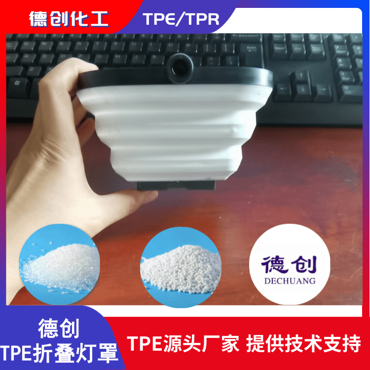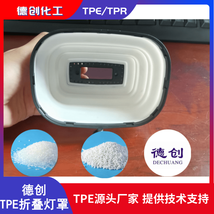 隨著社會(huì)的發(fā)展和人們對(duì)生活的追求,生活質(zhì)量的提升是越發(fā)的新奇,從生活用品的提升來看,確定了國(guó)民的生活是越來越好,東莞市德創(chuàng)化工有限公司作為一家專業(yè)生產(chǎn)研發(fā)TPE,TPR橡塑原料的生產(chǎn)廠家來說,為新產(chǎn)品的開發(fā)我們將盡一份綿薄之力,今天我們就來給大家介紹一下TPE包膠PP或包膠PC材質(zhì)的TPE折疊燈罩材料!