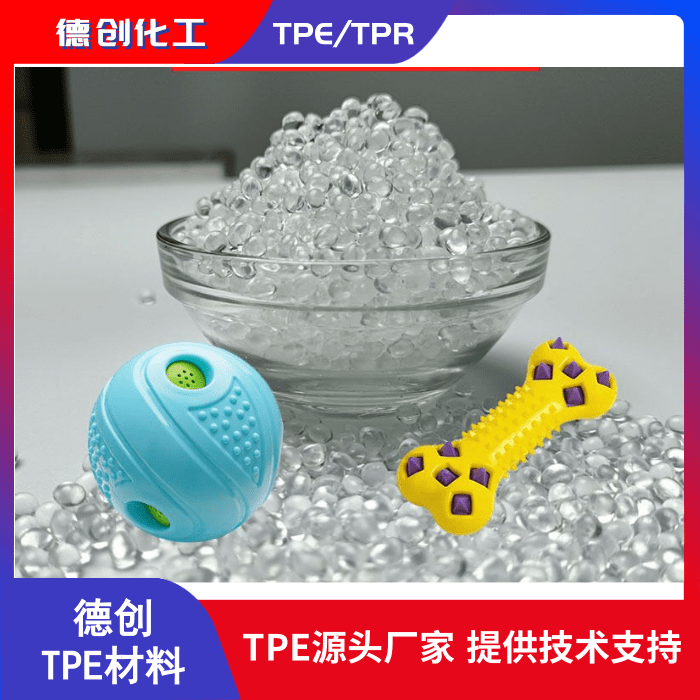 TPR材料的英文為:Thermo-Plastic-Rubber material,是熱塑性橡膠材料。TPR材料是以熱塑性丁苯橡膠(如SBS,SEBS)為基礎(chǔ)原材料,添加樹脂(如PP,PS),填料,增塑油劑以及其他功能助劑共混改性材料。高透明TPR在常溫下為兩相體系。呈連續(xù)相(橡膠相)的柔軟鏈段決定著材料的高彈性、良好的低溫性能、耐磨性能和耐曲撓性能;而呈分散相的硬段則起物理交聯(lián)作用,具有補強效果。這種自補償性致使熱塑性橡膠純膠本身在常溫下具有較高的強度和綜合物理力學(xué)性能。