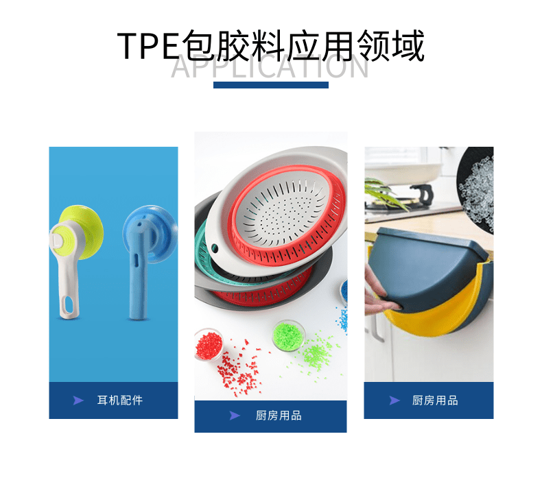 TPE是所有熱塑性彈性體中物性和硬度最容易調(diào)配定制的品種,TPE在各行各業(yè)應(yīng)用廣泛,在軟觸感接觸領(lǐng)域,TPE成為最佳的軟接觸或包覆材料。