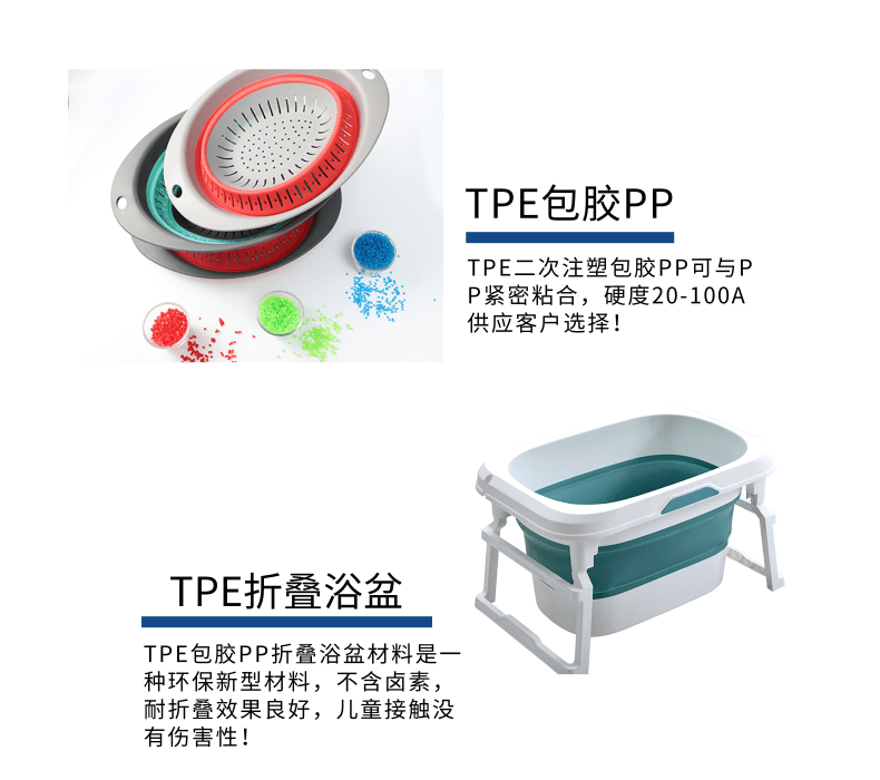 優(yōu)點(diǎn):良好粘接效果,流動(dòng)性佳,可用于快速注塑,手感柔軟,抗震、防滑、使用舒適,耐候性、耐化學(xué)品性佳,耐壓縮變形性,硬度 范圍廣,易著色、易加工。